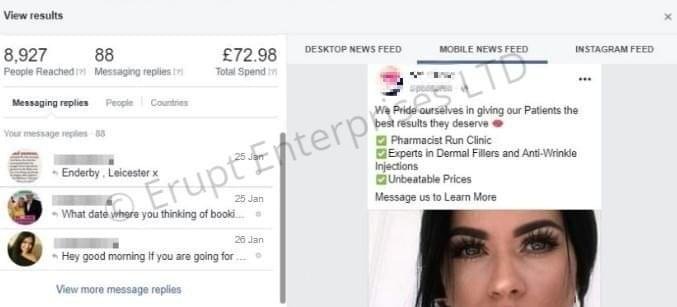 This single advertisement generated 88 leads for ONLY £72 which led to several hundreds of pounds of new business for the clinic as the base procedure was priced at £130 and the average lead-to-paying client ratio was 10 to 1.